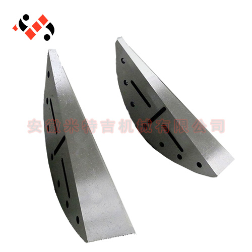 熱剪刀片主要采用5CrNiMo、5CrW2Si、6CrW2Si、3Cr2W8V、4Cr5MoSiV1(H13)等耐熱優(yōu)質(zhì)合金剛制造,主要用于連鑄、連軋、熱鍛、開坯等中間過程中高溫狀態(tài)的剪切。米特吉公司開發(fā)的復(fù)合材料熱剪刀片,壽命比整體合金工具鋼提高3~5倍以上并且可對(duì)刀片進(jìn)行預(yù)保護(hù)及修復(fù)。
